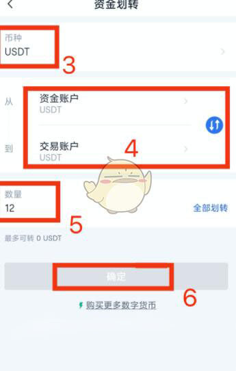 1、打开欧易okx,进入软件首页进行资金划转,点击【交易】页面内的划转按钮,选择【币种】,将资产从【资金账户】划转到【交易账户】,填写【数量】,点击【确定】。若进行USDT保证金合约,划转币种为USDT;若进行币本位保证金合约,就划转相应的币种。