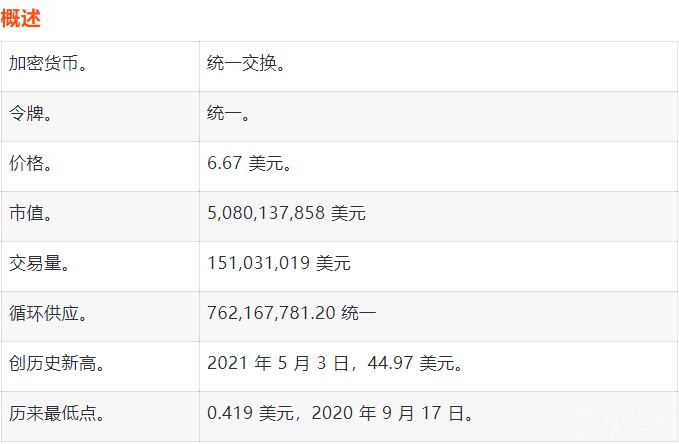 什么是 Uniswap?Uniswap 是一个分散的交易所,以两个智能合约的形式托管在以太坊区块链上,以及一个公共的开源前端客户端。Uniswap 是如何工作的?Uniswap 是一种自动流动性协议。没有订单簿,没有中心化的政党,也没有中心化的贸易促进者。Uniswap 可以减半吗?不,Uniswap 不能减半,因为它适用于以太坊区块链,并且只能被开采。Uniswap 的价格会在 2022 年底之前上涨吗?到2022 年底,UNI 的价格可能会升至最高9.1790 美元。2025年底UNI的价格会上涨多高?到2025 年底,山寨币的价格可能会飙升至46.4702 美元的潜在高点。Uniswap 安全吗?是的,Uniswap 是一个安全的选择,该网络目前拥有322,019 个活动地址。