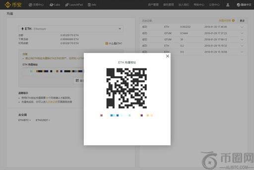以ETH为例,输入所选币种“ETH”,选择“ETH”可获取ETH充值地址,复制该地址可进行充值或通过点击“展示二维码”进行扫码充值。